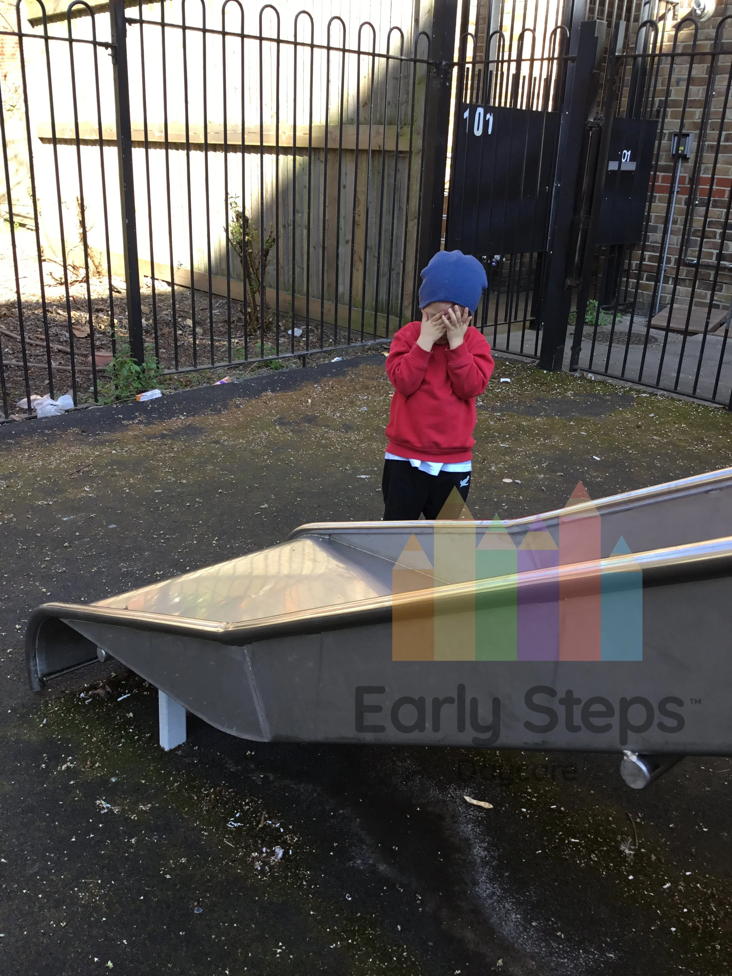 Taking turns, listening, and sharing laughter during hide and seek – supporting social interaction and communication in EYFS.