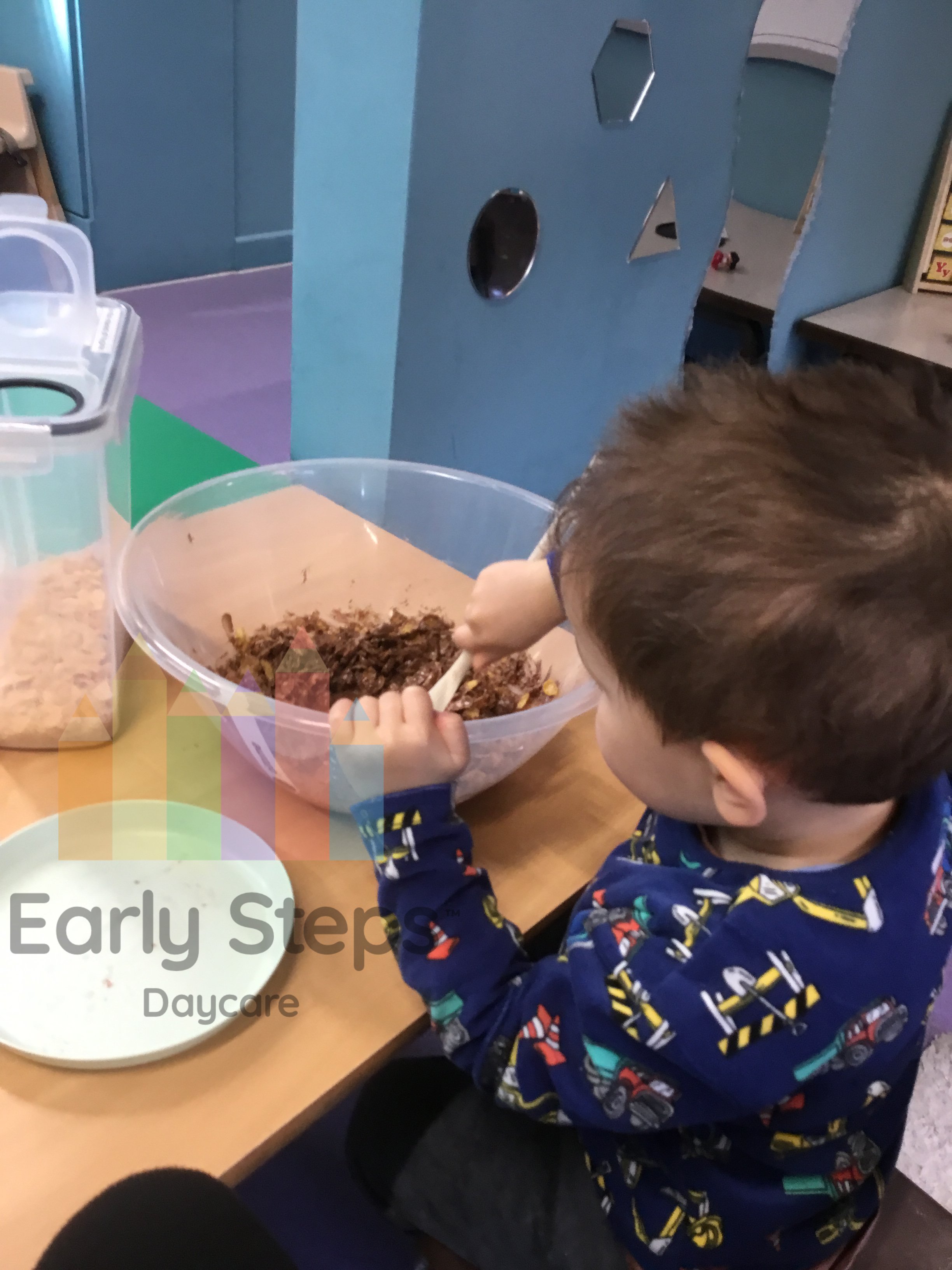 Making chocolate Rice Krispies while practising our instruction-following skills!
