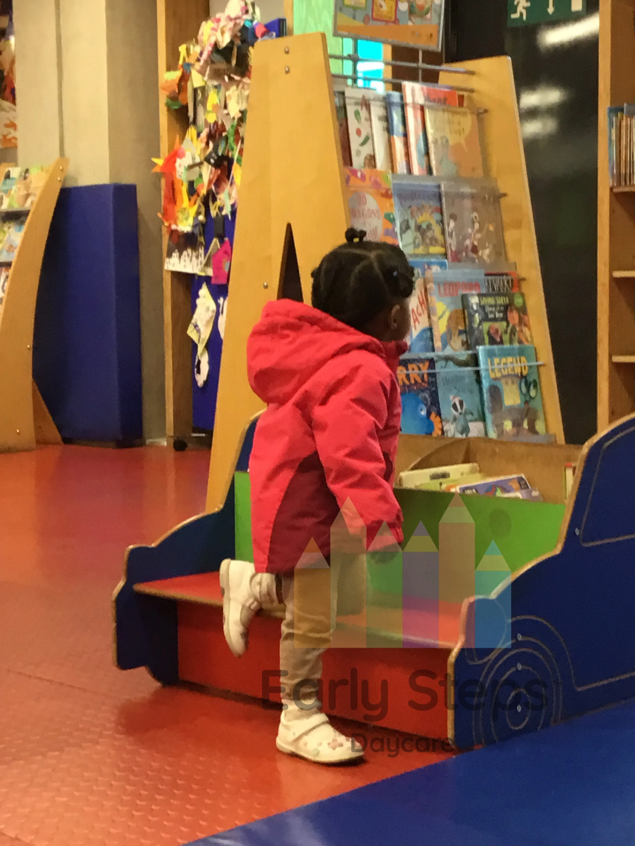 Exploring books and building a love for reading at the local library – supporting early literacy and curiosity in EYFS.