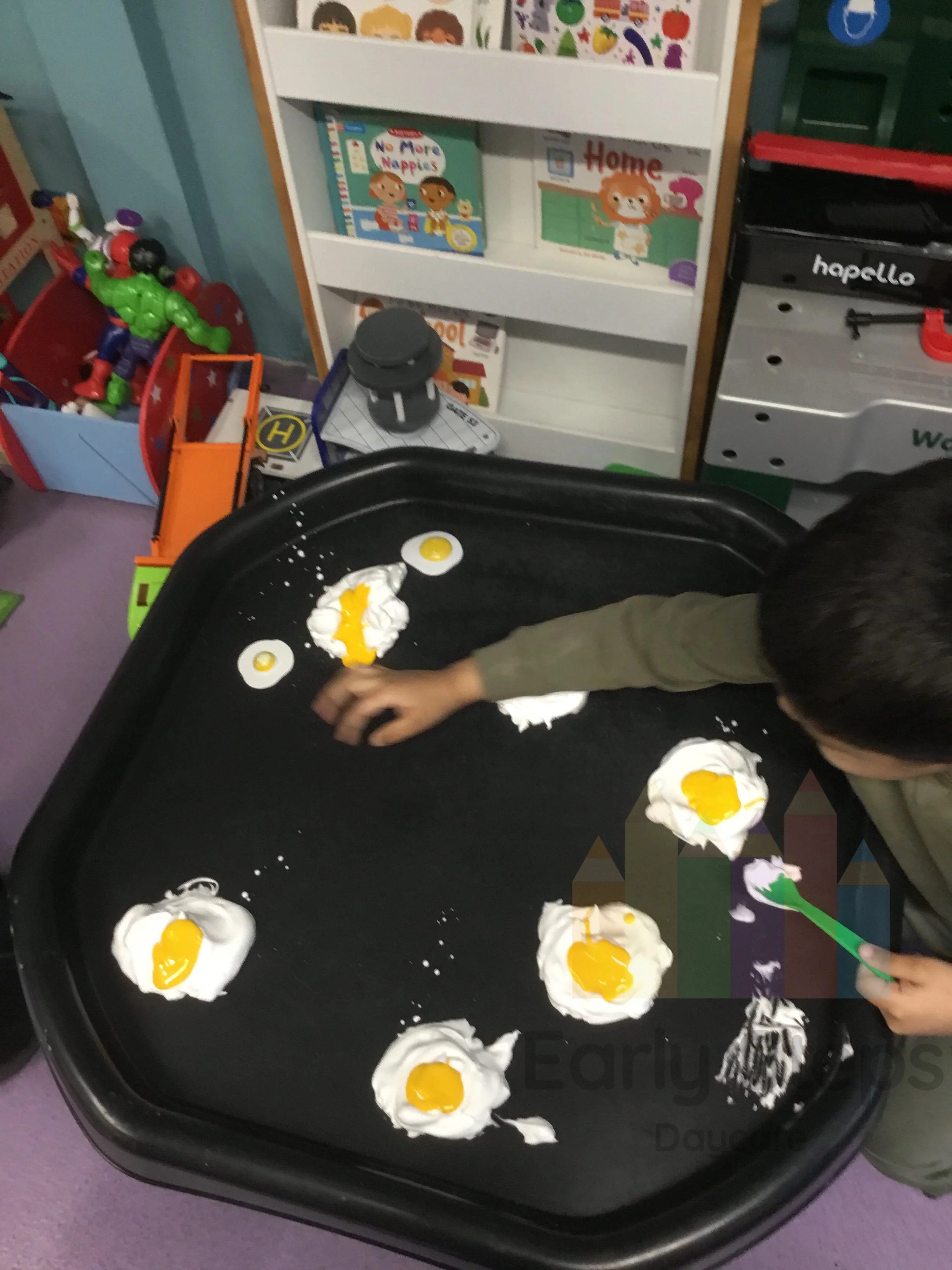 Exploring textures and creativity through imaginative messy play – supporting Expressive Arts and Design in EYFS.