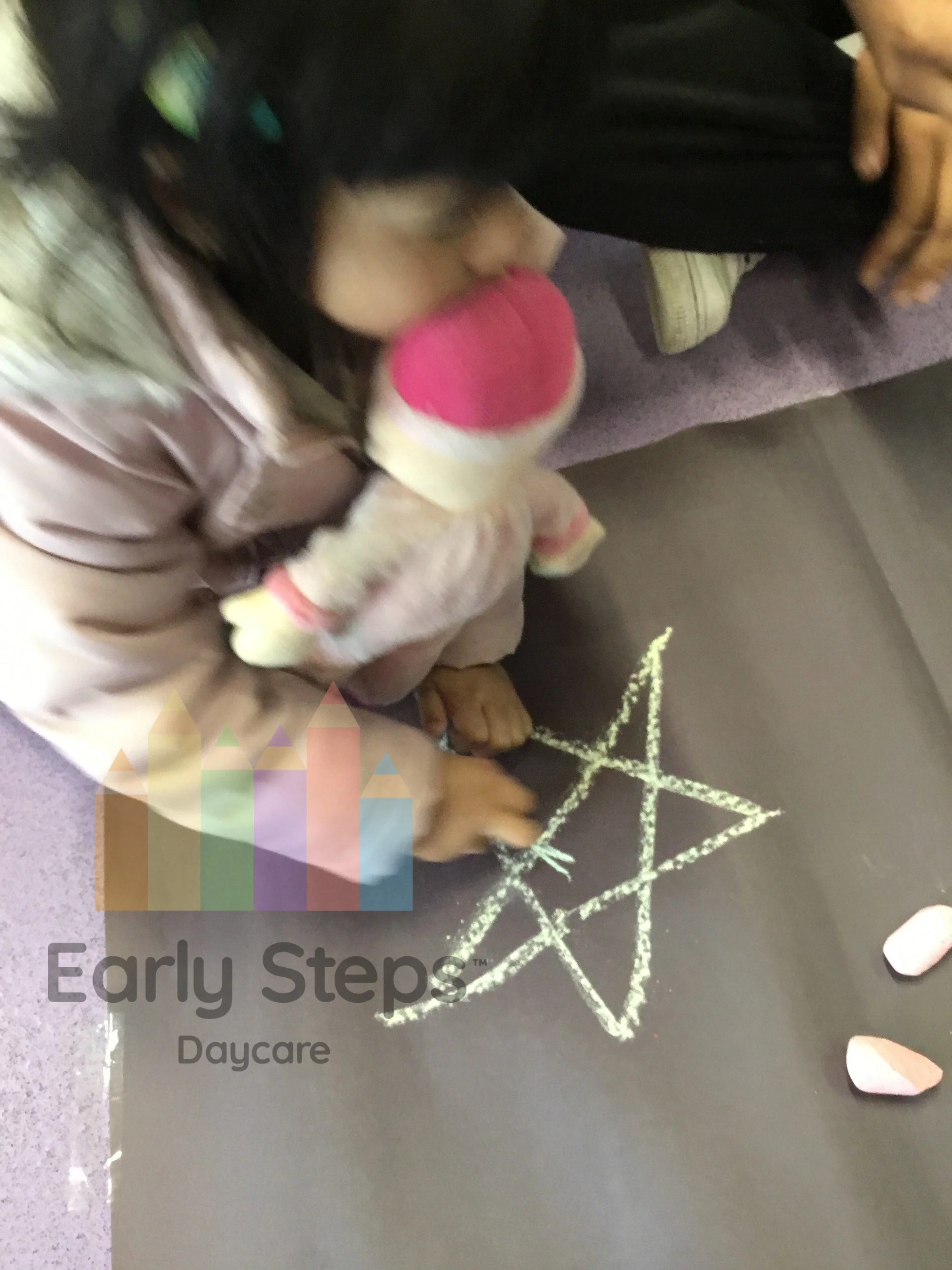 In our nursery’s expressive arts and design sessions, children learn to imitate and draw stars—boosting fine motor skills, creativity, and early drawing abilities.