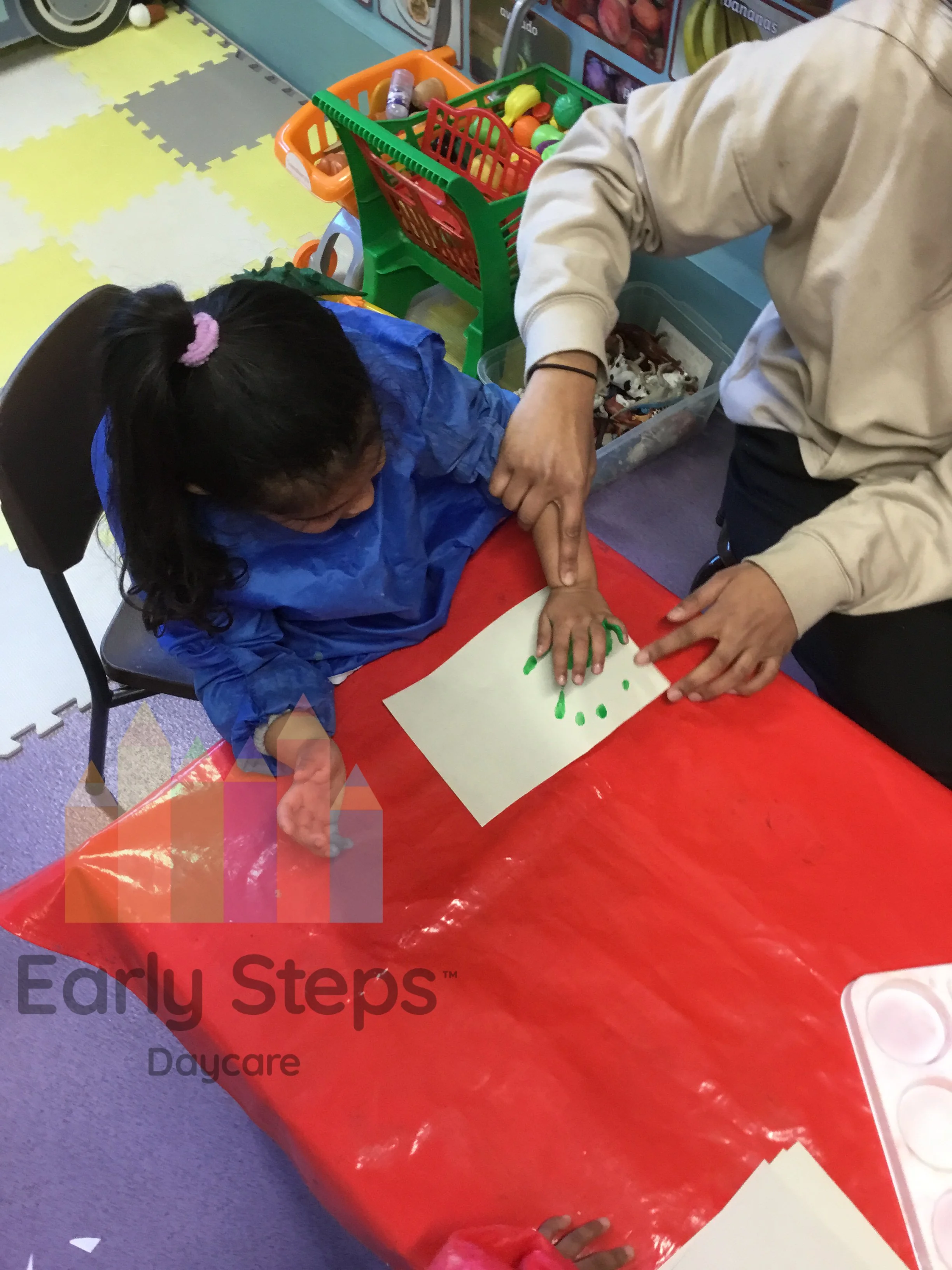 As part of our nursery’s expressive arts and design curriculum, children enjoy creating vibrant handprint art—building creativity, sensory skills, and self-expression.