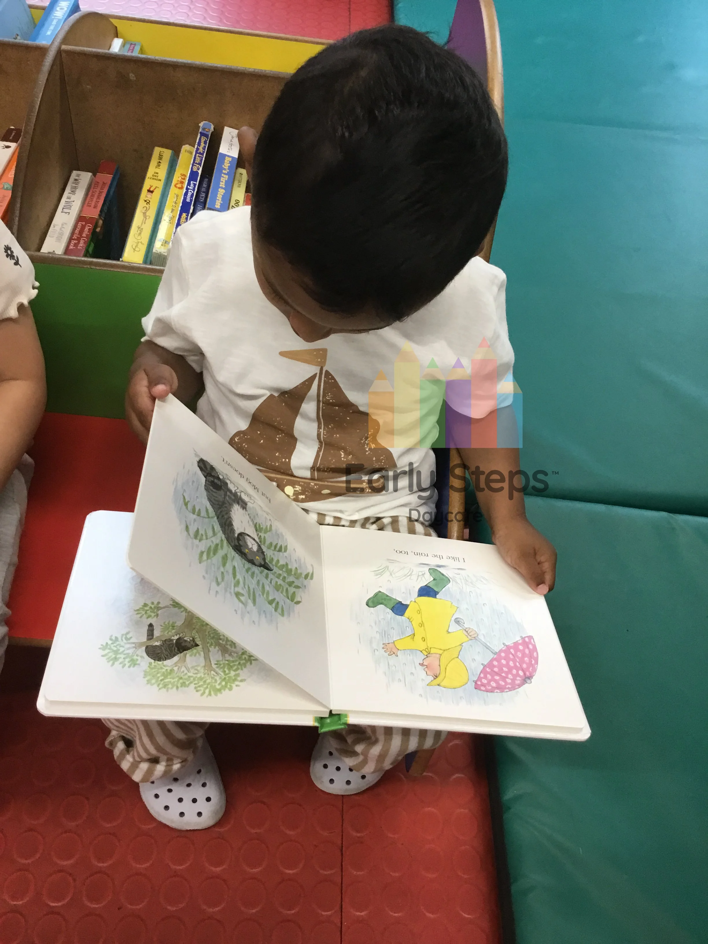 Confidently turning pages and sharing stories with friends, this young reader is building language skills, developing social confidence, and laying the groundwork for early literacy