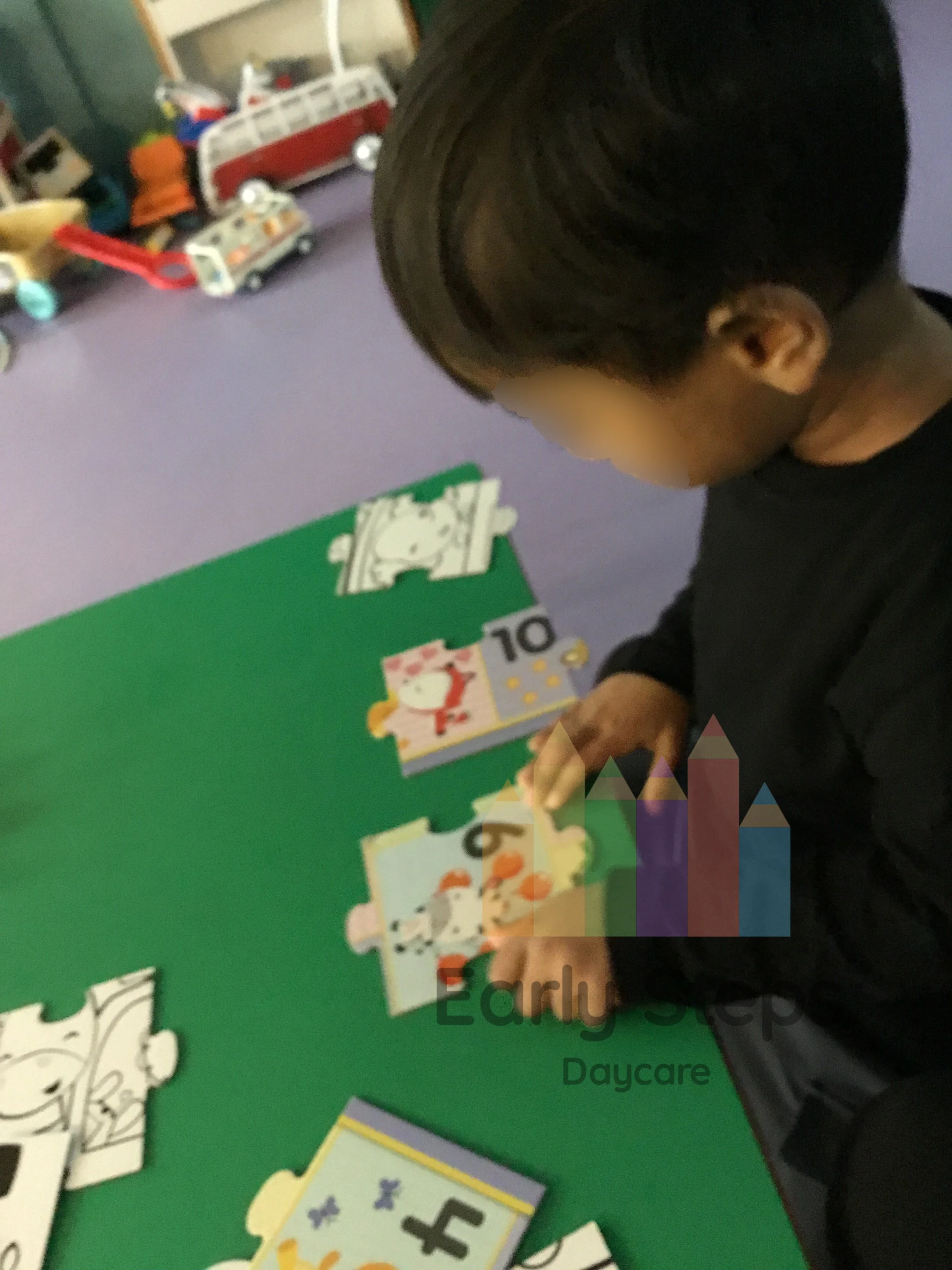 Through hands-on puzzles, children enhance their number recognition and problem-solving skills as part of early mathematics learning