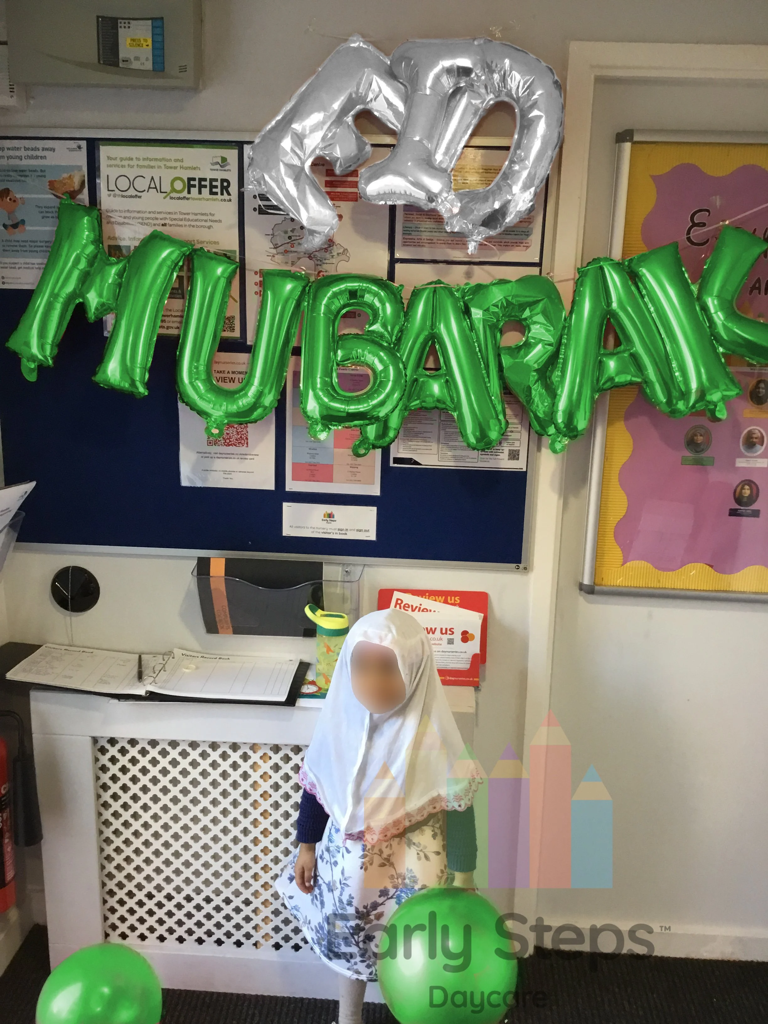 Child celebrates Eid at nursery, exploring cultural traditions, community, and special events, supporting Understanding the World skills.