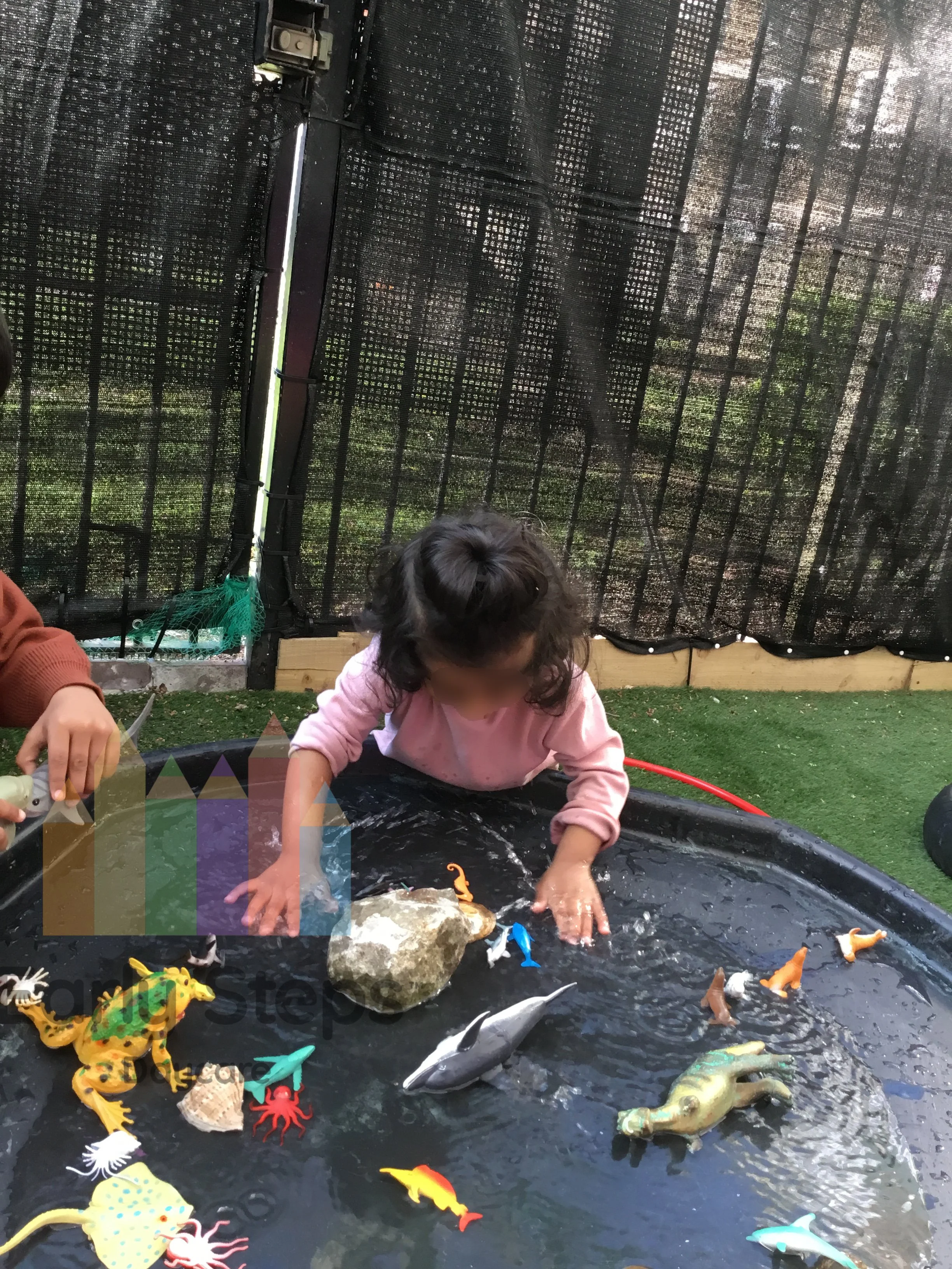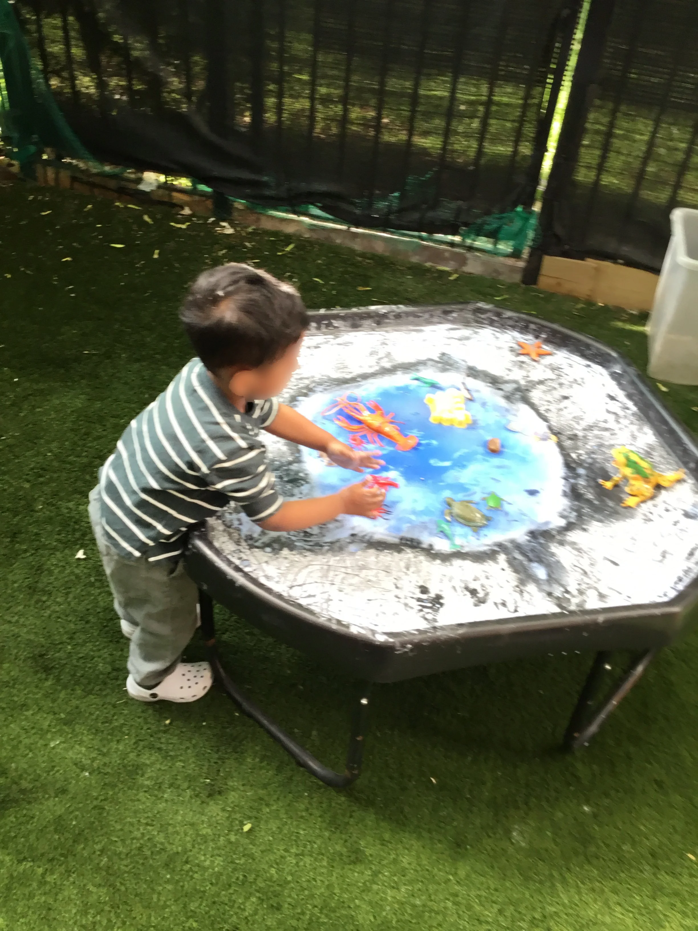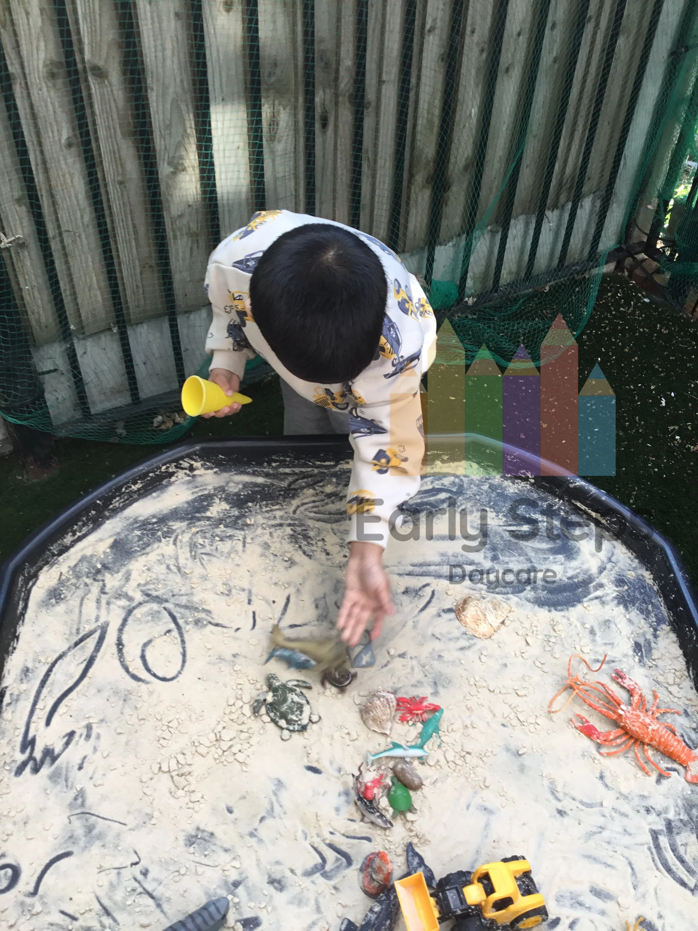 Children learn about marine life in the nursery garden, exploring sea creatures, their habitats, and how they live, supporting Understanding the World skills.