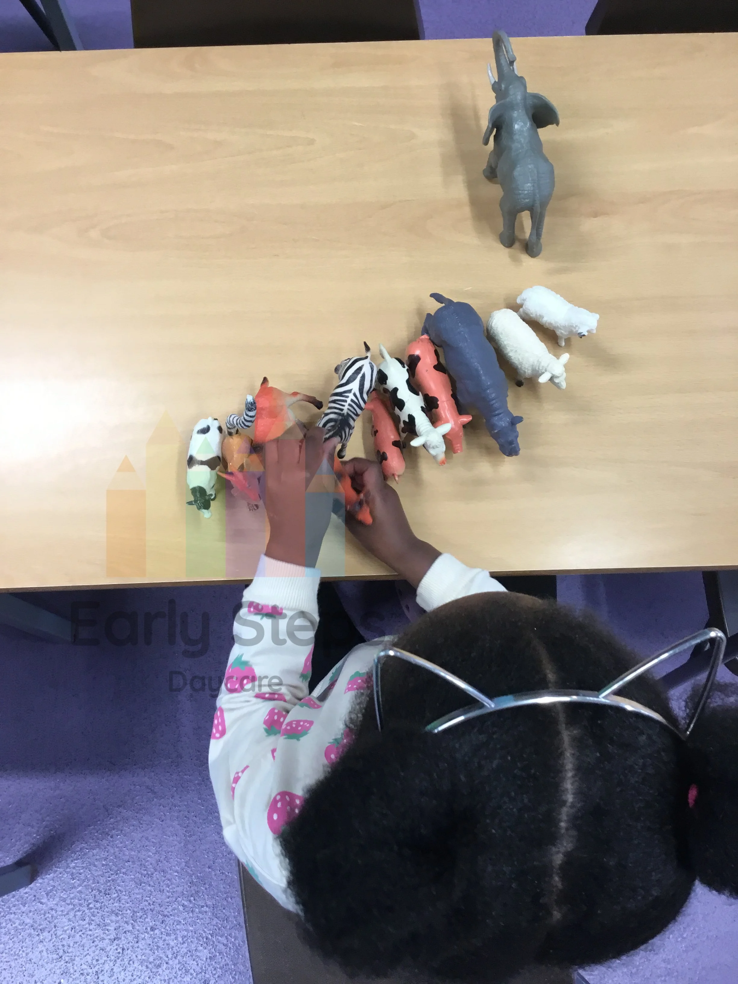 Exploring the differences between farm animals and wild animals through hands-on play and observation.