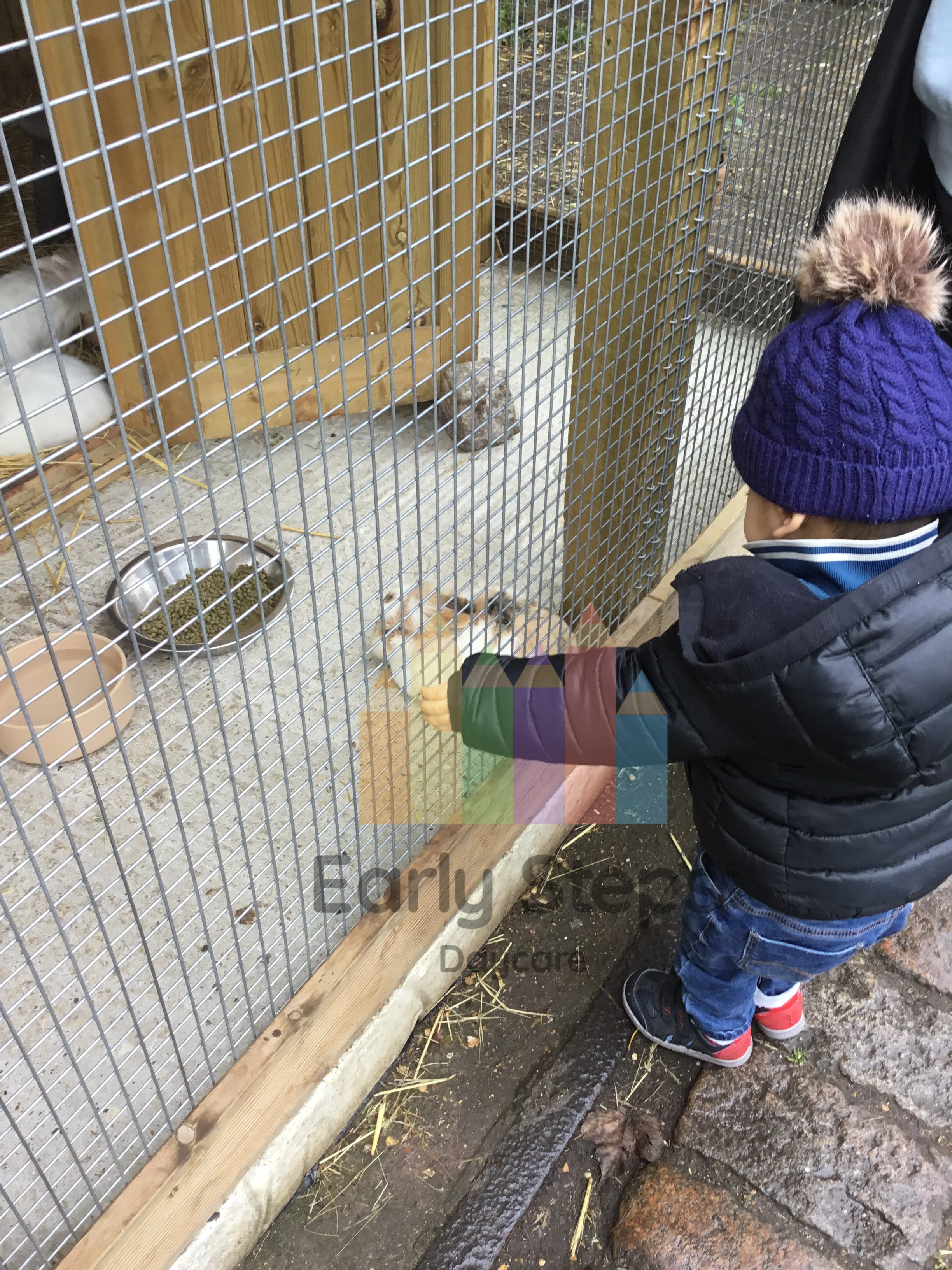 Child visits the local farm, exploring animals, farm life, and nature, supporting Understanding the World skills.